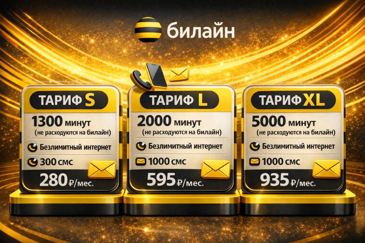 Хотите получить все необходимое для комфортного использования интернета и связи по доступной цене? Тогда тарифы "S", "L" и "XL" от Билайн — это именно то, что вам нужно!